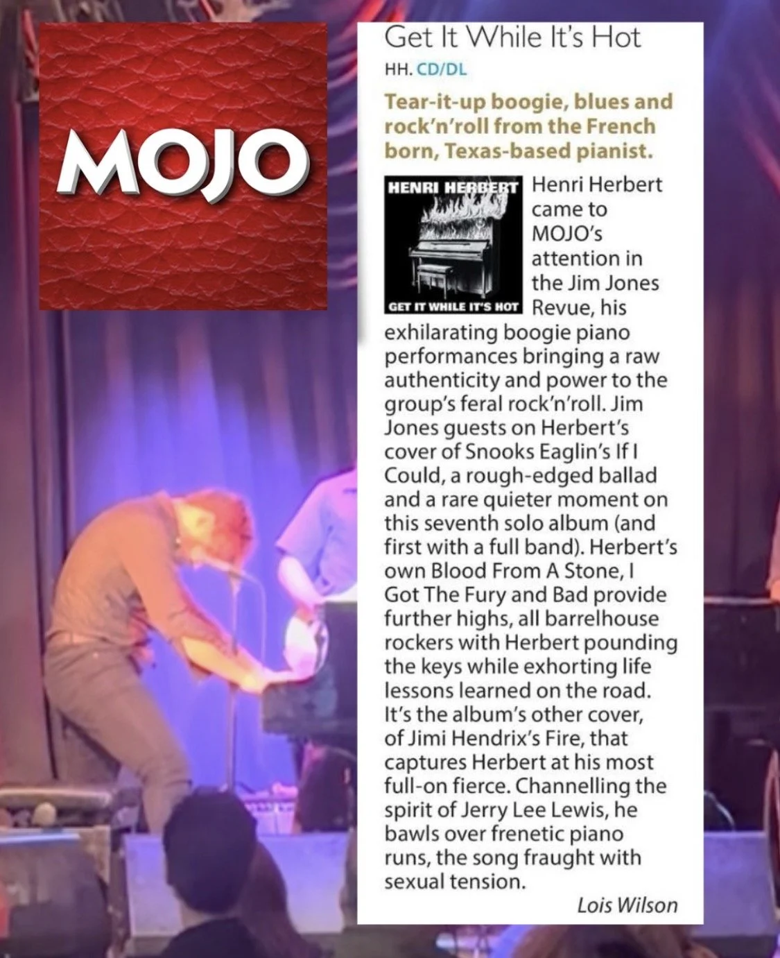“As a collection of songs there is little doubt that Get It While It’s Hot re-creates all the wild spirit and raw energy of early rock’n’roll, rhythm and blues, and garage boogie that you will experience when seeing Henri Herbert and his fine band on stage. But more than that it’s an album that stands as a fine testament to the rock’n’roll heritage which it draws on so heavily and a very important statement to keep this vital legacy well and truly alive and kicking well into the 21st century.” - Louder Than War (Album 5-Star Rating)